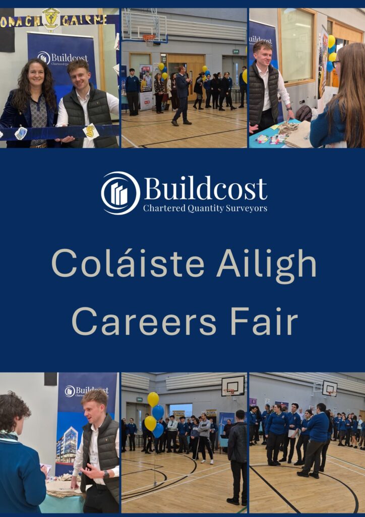Buildcost was delighted to build community connections with Coláiste Ailigh and participate in their careers fair, where students from 1st to 6th year had the opportunity to engage with professionals from a wide range of industry and employment sectors. Kevin and Sinéad from our team were on hand to answer questions and share insights into careers in Quantity Surveying and the Construction Consultancy sector . With Kevin being a native Irish speaker, the students especially appreciated the chance to discuss career paths through their own language, and Sinéad — an avid learner of Irish — thoroughly enjoyed the opportunity to practise and connect with the students in Irish throughout the event.